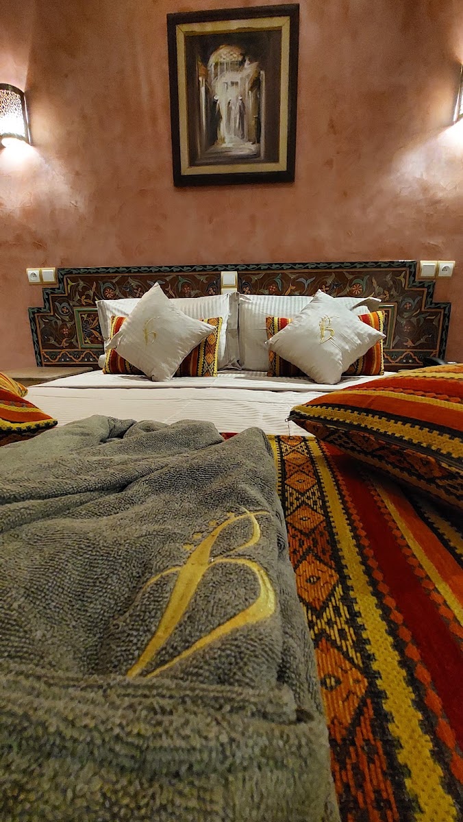Rachid is very nice and helped us so much. The hotel is lovely and spacious. Very cheap good price and good to stay before going to the desert. The starters for the salad was questionable not very nice but the main was good but the dessert was very mid. But would recommend